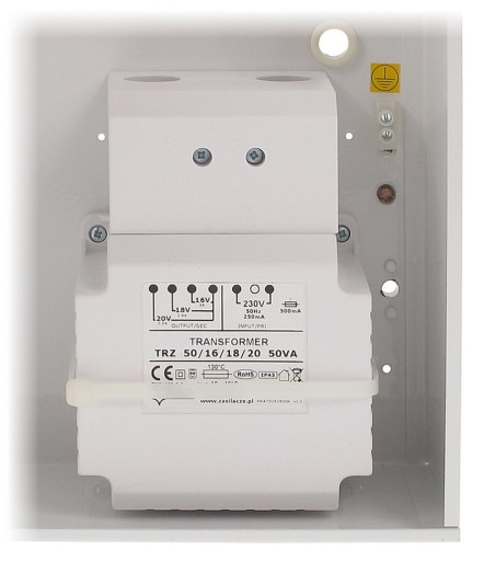 - Transformator: TRP 50VA/16V/18V/20V, w obudowie PC/ABS, IP20