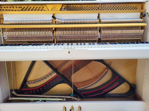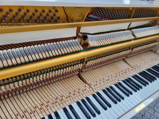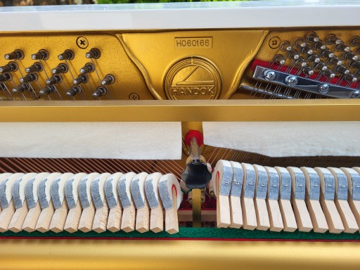 Pianino Koreańskie Handok M108 lata 90 ,w super stanie technicznym ,muzycznie z pieknym ciepłym szlachetnym brzmieniem i rewelacjnie procującą mechaniką firmy Hamamatsu, Pianino nastrojone na gotowo 440hz do gry i wyregulowane z transportem i ze wstawieniem na niski parter (max 5 schodów) i pisemną 12 miesięczną rękojmią na trzymanie stroju i sprawne działanie mechanizmu młoteczkowego. Wymiary 142x110x55cm pełna klawiatura 88 klawiszy