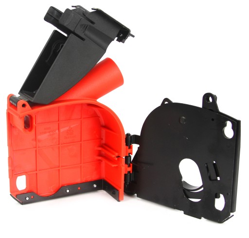 - Osłona umożliwia odsysanie pyłu podczas cięcia
