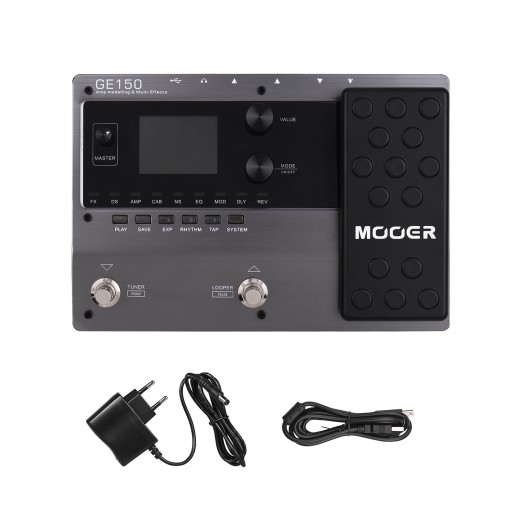 • MOOER GE150 to najnowszy wpis w linii pedałów wielofunkcyjnych GE firmy MOOER. GE150 jest wyposażony w 55 wysokiej jakości modeli wzmacniaczy i 151 różnych efektów, prosty i intuicyjny interfejs użytkownika, uzupełniony w pełni działającym pedałem ekspresji. Dzięki możliwościom OTG użytkownicy mogą nagrywać bezpośrednio na kompatybilne urządzenie z dowolnego miejsca!