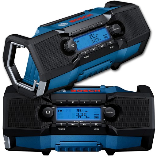 Możliwość połączenia dwóch radiotelefonów ze smartfonem zapewnia wyjątkowy dźwięk stereo. To radio jest idealne do rozrywki na placu budowy - zarówno przez odbiór radiowy, jak i ze smartfonem jako źródłem muzyki.Narzędzie jest kompatybilne z akumulatorami Bosch Professional 18 V (1,5 do 8 Ah). Dwa głośniki GPB 18V-2 C Professional o łącznej mocy 15 watów zapewniają doskonały dźwięk, a dodatkowe membrany pasywne zapewniają lepszą reprodukcję basów. Karton; 1 x zasilacz DC-in (nr części zamiennej 1619 PB4 880); 1 x przewód aux; 1 x bateria litowa 3 V CR2032 guzikowa