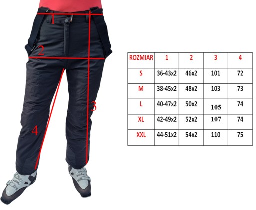 - Posiadają również wewnętrzne, antypoślizgowe nogawki przeciwśnieżne.