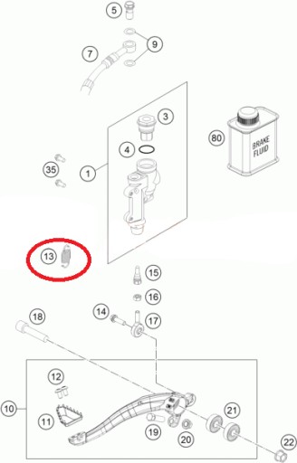 Numer 13 na rycinie(na przykładzie KTM 125 SX 2016 - tył hamulec pompa)