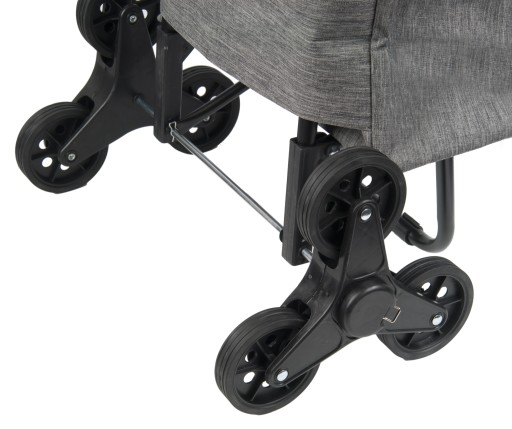 Wygodna torba na zakupy na stelażu z kółkami potrójnymi to doskonała alternatywa na schody! Wykonany z trwałego materiału, wodoodporny materiał, lekki, składany stelaż. Łatwo zdejmowane kółka. Antypoślizgowe podkładki. Obrotowe podwójne kółka sprawiają, że wózek praktycznie sam zjeżdża i wjeżdża po schodach - bez podnoszenia! Wózek na zakupy na kółkach to wspaniałe narzędzie pomocne przy codziennych zakupach oraz w sytuacjach typu targi, szkolenia itd. dzięki wózkowi nasz kręgosłup i my sami odpoczywamy a transport produktów nie stanowi już problemu.
