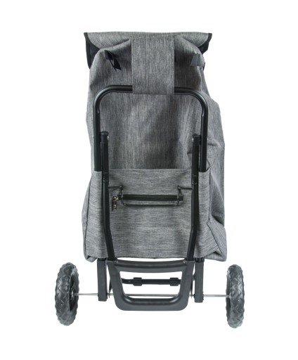 W torbie pomieścisz na pewno wszystkie swoje zakupy. W razie potrzeby można też zdjąć torbę i korzystać z samego stelaża, który pomoże transportować większe gabaryty. Torba jest zdejmowana i można ją prać. Z tyłu torby znajduje się mniejsza kieszeń na suwak - idealna na mniejsze produkty.