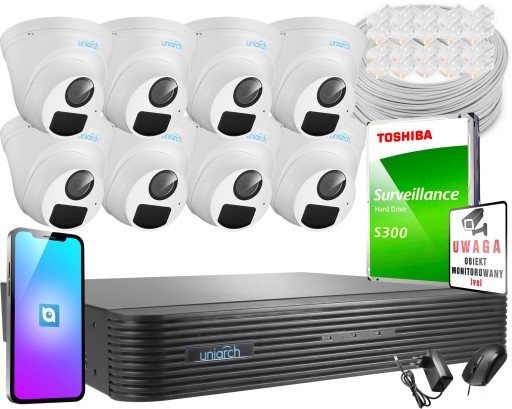 ZESTAW DO MONITORINGU ZEWNĘTRZNEGO 8 KAMER IP 2MPX UNIARCH