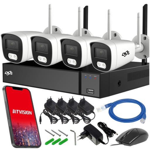 КОМПЛЕКТ WIFI-МОНИТОРИНГА 4 БЕСПРОВОДНЫЕ НАРУЖНЫЕ КАМЕРЫ 5Mpx DVS