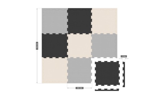 - Zestaw 9 puzzli i 12 brzegów pozwala na dużą kreatywność przy układaniu maty, dzięki czemu bez problemu dopasujesz ją do swojego wnętrza.