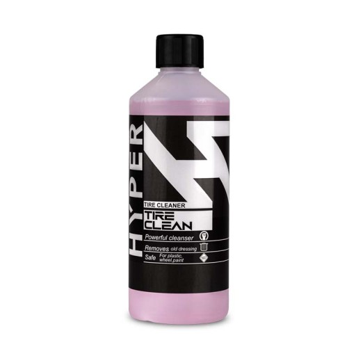 Hyper Tire Clean Tire Cleaner – preparat do czyszczenia opon i gumy. Wysoka zawartość detergentów i środków powierzchowo-czynnych powoduje niezwykłą skuteczność w czyszczeniu opon lub innych powierzchni gumowych. Pieniąca formuła pozwala penetrować i separować cząsteczki brudu od gumy. Ściąga stare dressingi i odtłuszcza powierzchnie, przygotowując pod nowy dressing czy inne zabezpieczenie.