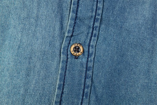 Koszula robocza DENIM, rozmiar M, 100% bawełny, 140 g/m2; wzmocnienia z Oxfordu na łokciach i kieszeniach, metalowe guziki, wewnętrzna wszywka imienna, unikalny projekt własny, certyfikat CE, zgodność z normą EN ISO 13688:2013