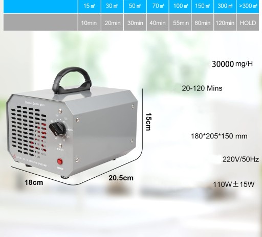 Wysokowydajny generator ozonu: Ulepszony generator ozonu wytwarza 30 000 mg ozonu na godzinę, co może szybko usunąć nieprzyjemne zapachy z powietrza.