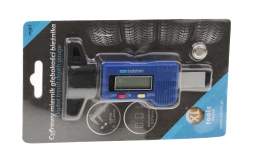 Cyfrowy miernik głębokości bieżnika opon (kod produktu MGB1) to niezastąpione narzędzie w warsztacie samochodowym i garażu. Jest przydatny w każdym aucie. Miernik jest wyposażony w wyświetlacz cyfrowy, który umożliwia łatwe odczytanie wartości. Można przełączać jednostki miary między milimetrami a calami. W mierniku znajdują się przyciski do zerowania oraz włączania/wyłączania. Do zestawu dołączona jest bateria.