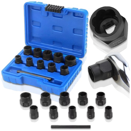 Niezależnie od tego, czy jesteś profesjonalnym mechanikiem, czy pasjonatem majsterkowania, nasz zestaw nasadek do uszkodzonych i obrobionych śrub oraz nakrętek to niezastąpione narzędzie, które pomoże Ci w najbardziej wymagających sytuacjach. Specjalnie zaprojektowany do wykręcania uszkodzonych elementów, zestaw ten jest niezbędnym wyposażeniem każdego warsztatu i garażu.