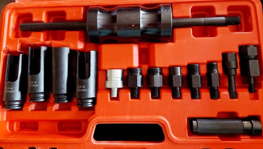 - Ten zestaw narzędzi zawiera klucze i gniazda profilowe głęboko otwarte, które mogą być używane do demontażu wtryskiwaczy