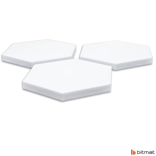 Pianka akustyczna heksagon marki Bitmat zwana także panelem akustycznym jest wykonywana z pianki BASOTECT, a jego struktura to otwarte komórki. Zastosowanie odpowiedniego materiału doskonale sprawdza się w studiach i pokojach muzycznych/kabinach lektorskich, ponieważ poprawia zrozumiałość mowy i wokalu. Jest to zastosowanie optymalne, które przy stosunkowo niskich kosztach pozwala zapobiegać pogłosowi, poprawia jakość dźwięku w pomieszczeniach mieszkalnych i roboczych, a także tworzy nowoczesny design.