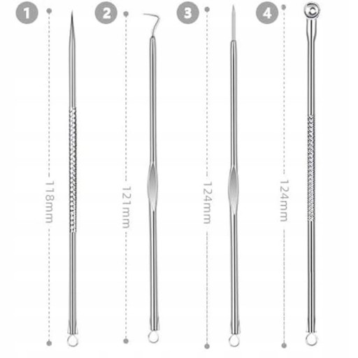 ✅Zestaw składający się z czterech różnych narzędzi to doskonałe rozwiązanie, które umożliwia skuteczne usuwanie trądziku, zaskórników i innych niedoskonałości skóry. Oferuje szeroki wachlarz możliwości, aby sprostać różnym potrzebom pielęgnacyjnym.