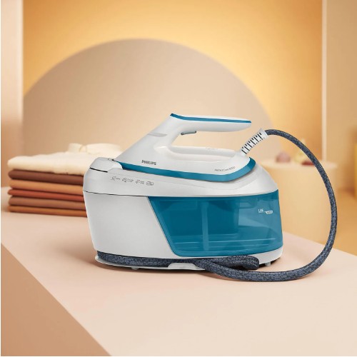 Wbudowany system usuwania kamienia Smart Calc Clean ułatwia konserwację żelazka z generatorem pary. W odpowiednim momencie przypomina on o konieczności odkamienienia. Co więcej, jest wyposażony w pojemnik, dzięki któremu usuwanie kamienia jest łatwe i bezpieczne. System służy do wielokrotnego użytku, co gwarantuje oszczędność — nie trzeba kupować dodatkowych wkładów.