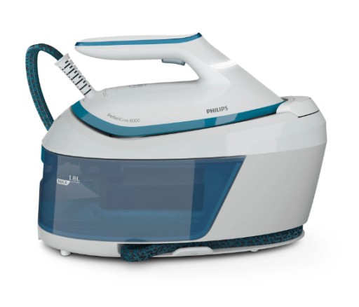 - Inne: Ciśnienie do 6,5 bara Bezpieczeństwo dla wszystkich tkanin przeznaczonych do prasowania Odłączany zbiornik wody – do 1,5 h ciągłego użytkowania Napełnianie w dowolnym momencie Alarm niskiego poziomu wody Duży otwór wlewowy Wąż 1,6 m Lampka przypominająca o usunięciu kamienia Możliwość zablokowania żelazka na stacji bazowej Waga żelazka: 1,18 kg