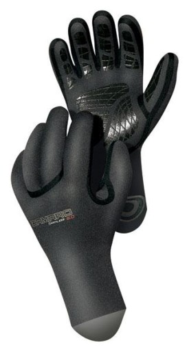 - Brak szwów plus dodatkowo podklejenie taśmą miejsc łączeń klejenia neoprenu sprawiają, że rękawiczki są prawie suche. Woda do środka dostaje się jedynie od góry (i to w niewielkiej ilości), w miejscu styczności ze skafandrem piankowym (a więc jest zdecydowanie cieplej niż w innych rękawicach mokrych).