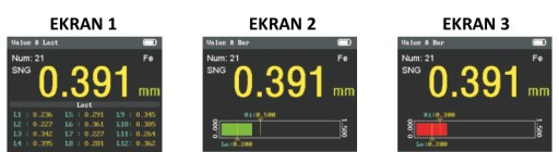 EKRANY: 1, 2, 3 - Mierzona wartość i podgląd poprzednich pomiarów: