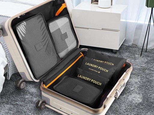 Komplet sześciu organizerów podróżnych, świetnie sprawdzi się do spakowania wszystkich potrzebnych rzeczy takich jak np: bielizna, obuwie, ubrania czy kosmetyki oraz do przechowywania bielizny do prania.
