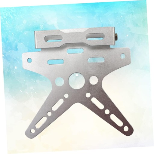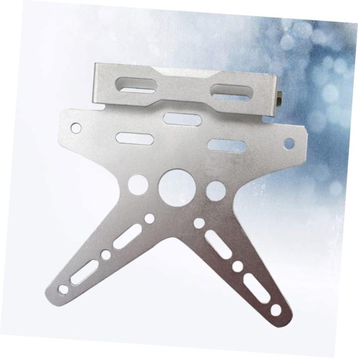 UNIWERSALNY UCHWYT DO ZAMOCOWANIA TABLICY REJESTRACYJNEJ MOTOCYKLA Z USZAMI DO MONTAŻU KIERUNKOWSKAZÓW I REGULACJĄ NACHYLENIA , WYKONANY Z CIENKIEJ BLACHY ALUMINIOWEJ O GRUBOŚCI 1 MM .DOKŁADNE WYMIARY SA PODANE NA ZDJĘCIU.