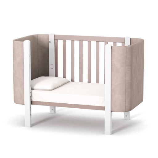 Łóżeczko Veres Monaco Velour ze stylowej kolekcji mebli dziecięcych dla noworodków prezentowane jest w uniwersalnych kolorach, odpowiednich zarówno dla dziewczynek, jak i chłopców.