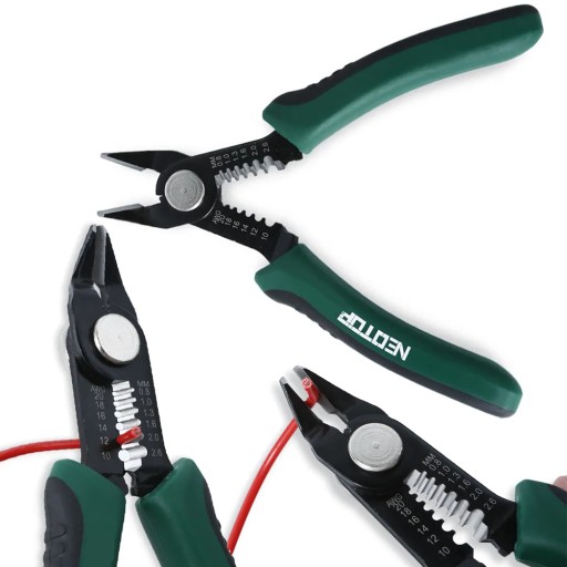 ♦️ Szczypce wyposażone są dodatkowo w korpusie w ściągacze izolacji dla przewodów w rozmiarach 0.8 - 2.6 mm