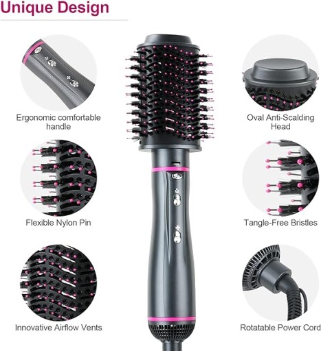 ⭐Antystatyczna Szczotka: Nasza suszarka jest wyposażona w antystatyczną szczotkę, która eliminuje efekt puszenia się włosów i sprawia, że są one gładkie i ułożone.
