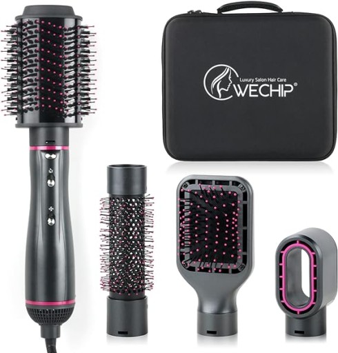 Twoje codzienne rytuały pielęgnacji włosów właśnie stały się bardziej wygodne i efektywne dzięki naszej WeChip Suszarce do Włosów 5 w 1. Ten innowacyjny sprzęt nie tylko osuszy Twoje włosy, ale także pomoże Ci w ich wygładzeniu, ułożeniu w loki, a nawet zadba o zdrowy wygląd dzięki technologii [jonów ujemnych]. Teraz możesz cieszyć się pięknymi włosami, które zawsze marzyłaś/eś o posiadaniu.