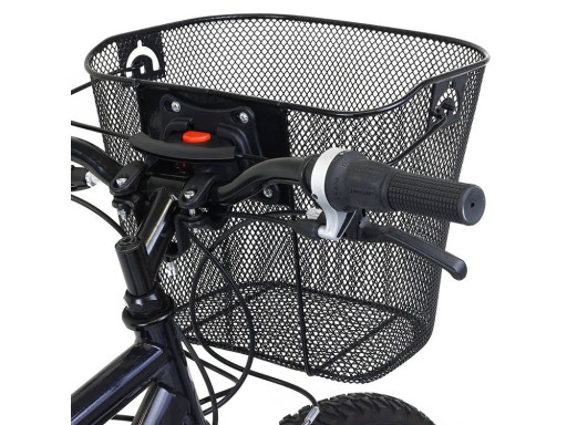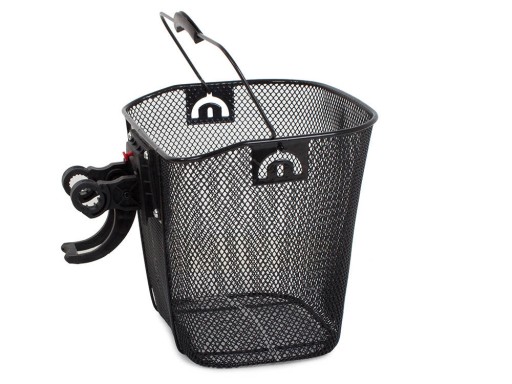Koszyk jest dość pojemny, zmieści torbę i plecak, a także małe zakupy. Dodatkowo posiada wygodną rączkę do przenoszenia. Pasuje do większości rowerów ze średnicą kierownicy do 2,5cm.