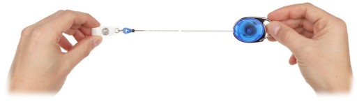 Wysuwana linka ułatwia zbliżenie karty do czytnika bez konieczności odpinania jej od ubrania