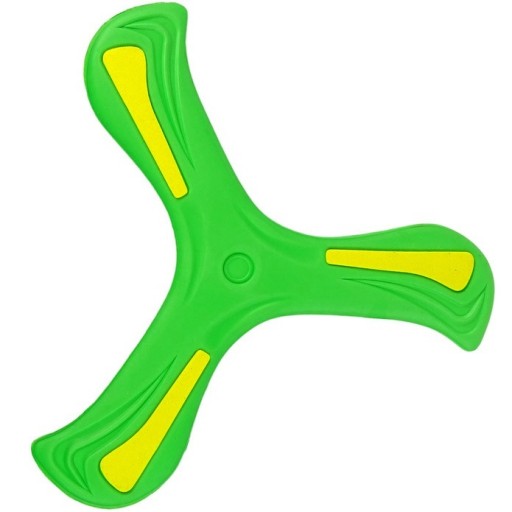 Bumerang ma kształt dysku, trzy ramiona zaokrąglone w jedną stronę. Wykonany jest z lekkiej pianki, dlatego bez problemu unosi się na wietrze. Mały rozmiar gwarantuje to, że zmieści się do torebki bądź torby. Zasięg jego rzutu to, aż 6 do 8 m!