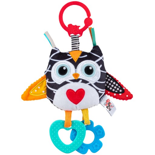 Sówka rozweseli bobasa, umilając spacer i domowy relaks. Do zabawki doczepione są dwa gryzaczki, a w jej wnętrzu kryje się dzwoneczek, który wydaje wesoły dźwięk przy potrząsaniu. Sowa uszyta została z materiałów różniących się fakturą i kolorem, przez co będzie ona stymulować zmysły malucha, zachęcając go do poznawania świata. Praktyczna zawieszka, w którą wyposażona została zabawka, pozwoli w łatwy sposób przymocować ją w wybranym miejscu. Produkt przeznaczony jest dla dzieci od dnia narodzin.