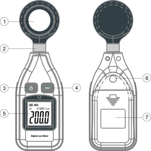 - Zakres pomiaru: 1-200 000 Lux / 1-18500 Fc,