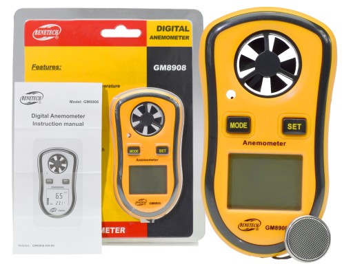 Anemometr Benetech to precyzyjne i kompaktowe urządzenie do pomiaru prędkości wiatru oraz temperatury powietrza.