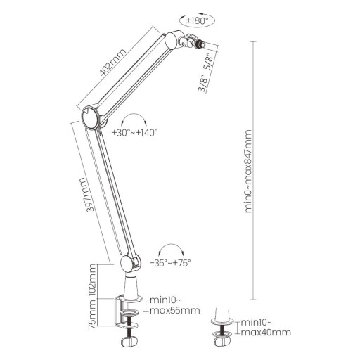 Profesjonalne ramię mikrofonowe - uchwyt MOZOS SB39