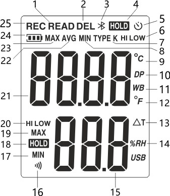 - Temperatura termopary: ±2.0℃(±0.4%)