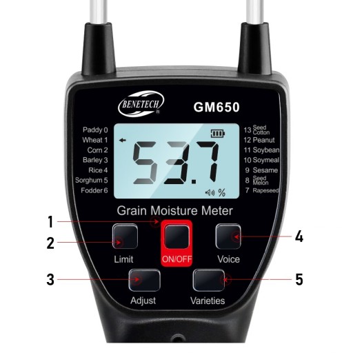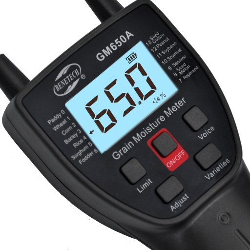 Wilgotnościomierz GM650 to wszechstronne i poręczne urządzenie opracowane do pomiaru wilgotności aż 14 grup zbóż i produktów takich jak:
