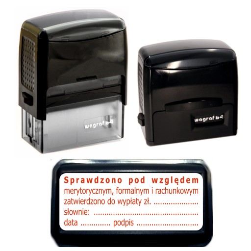Pieczątka SPRAWDZONO POD WZGLĘDEM MERYTORYCZNYM FORMALNYM I RACHUNKOWYM różne kolory odbicia Wagraf B4s 58x24mm