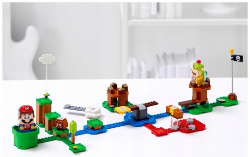 Zestaw LEGO Super Mario Przygody z Mario poziom startowy (71360) pozwala dzieciom połączyć siły z ulubionym bohaterem i wybrać się na poszukiwanie przygody w prawdziwym świecie. Zestaw zawiera figurkę LEGO Mario, która poprzez ekran LCD i głośnik natychmiast odpowiada na wszelkie pytania. Gracze zarabiają wirtualne monety, przesuwając figurkę LEGO Mario z rury startowej do końcowego słupka. Mogą w tym celu wirować, korzystać z chmurkowych platform i pytajnikowych bloków, a także toczyć zaciekłe bitwy z Goombą i Bowserem Jr. Układając klocki w innej kolejności, dzieci mogą budować nowe poziomy do pokonania.