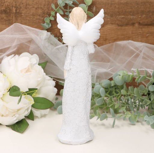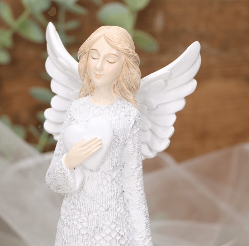 Aniołki polirezynowe to piękne figurki na prezent dla bliskiej osoby. Aniołek to idealny pomysł na prezent ślubny. Taki prezent posłuży jako pamiątka na długie lata. Figurka pięknie ożywi i podkreśli Twoje wnętrze, a sam aniołek to świetny upominek dla kolekcjonerów. Aniołek w pięknej różowej sukience we wzory, może symbolizować Pannę Młodą.