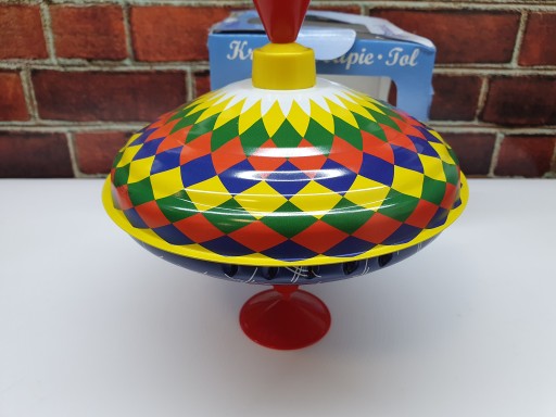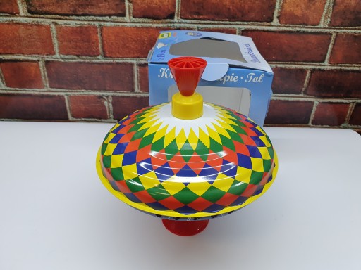 Zabawka podczas kręcenia wydobywa z siebie dźwięki o różnych tonach w zależności od szybkości kręcenia. Zawiera podstawkę. Odpowiedni dla najmłodszych od 18 miesiąca życia. Zapakowany w składane pudełko z informacjami o produkcie.