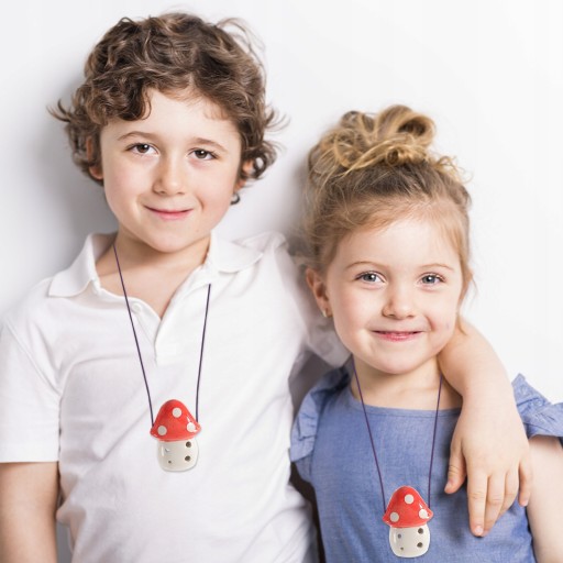 Ta okaryna z kreatywnym wzorem w kształcie grzybka przyciągnie uwagę dzieci.