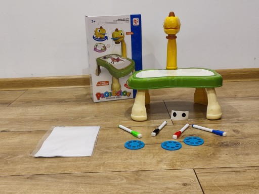 Niezwykły kreatywny stolik z projektorem do rysowania z motywem dinozaura do rysowania, przeniesie Twoje dziecko w fascynujący świat prehistorycznych olbrzymów. Projektor ma kształt i wygląd dinozaura, co dodaje mu niepowtarzalnego charakteru i sprawia, że zabawa staje się jeszcze bardziej ekscytująca.