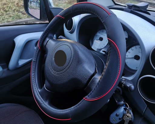 Pokrowiec na kierownicę z wysokiej jakości ekoskóry o średnicy zewnętrznej kierownicy: od 37cm. do 39cm.