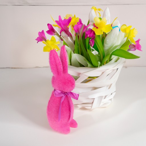 Ten flokowany królik to nie tylko ozdoba, ale także wyrazisty element, który wniesie do Twojego domu nutę wiosennej magii.