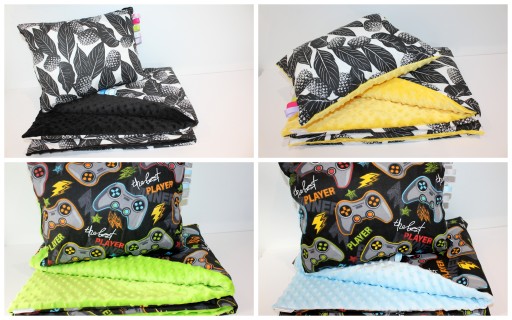 Dodatkowo przyszyte kolorowe tasiemki uatrakcyjniają kocyk Minky (na życzenie Klienta szyjemy bez tasiemek)