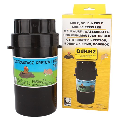 Akustyczny elektroniczny odganiacz kretów i gryzoni, przeznaczony do aplikacji doglebowej. Odpędza polne myszy, krety, gryzonie i grabki.