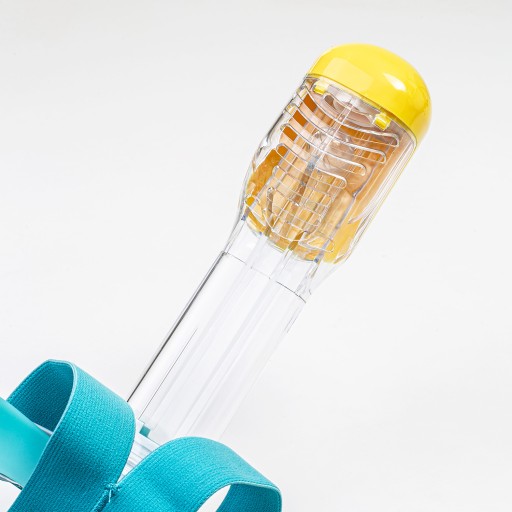 ◉ Gdy rurka oddechowa jest całkowicie zanurzona, pływająca kula unosi się i blokuje ją, aby zapobiec przedostawaniu się wody. Jeśli górna część rurki do oddychania znajduje się poza wodą, pływająca kula spada, a następnie można swobodnie oddychać.